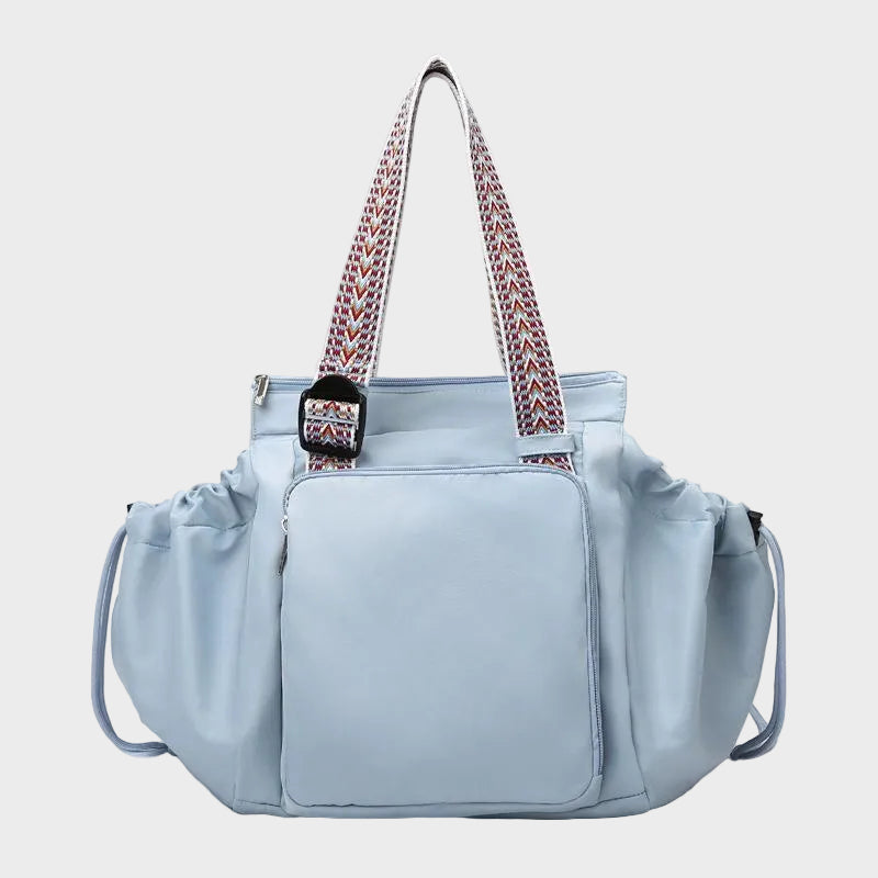 Built for women who carry it all, the Ezra Pack Tote blends utility with elevated style. Its lightweight yet durable build, spacious compartments, and expandable side pockets make it your go-to bag for everything from grocery runs to gym sessions. The unique woven straps add a bold flair while ensuring comfortable carry all day.